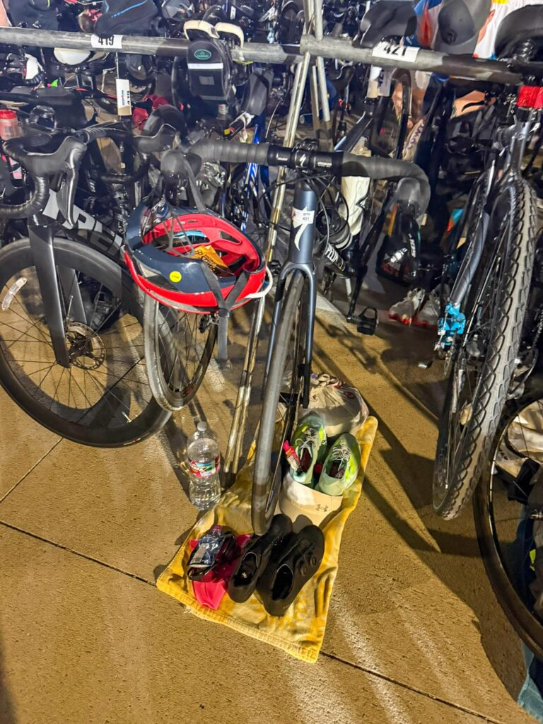 There were a lot of athletes in the lake testing out the water temp and feel, but since I know swim is my strongest sport, I felt ok skipping that. Idk, but it’s just my “thing” for races…I don’t love doing a big warm up/shake out the day before.